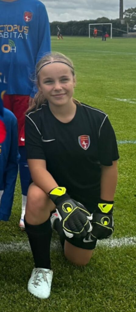 Je suis gardienne des U13F depuis 8 mois après avoir essayé de jouer sur le terrain mais j’ai trouvé ma place dans les buts.